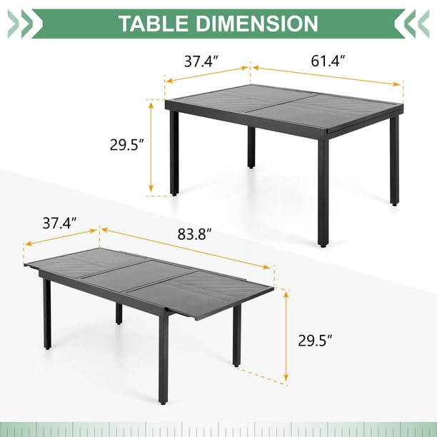 Mf Studio Outdoor Expandable Dining Table All Weather Metal Steel Accommodate To 8 Person Black Walmart Com